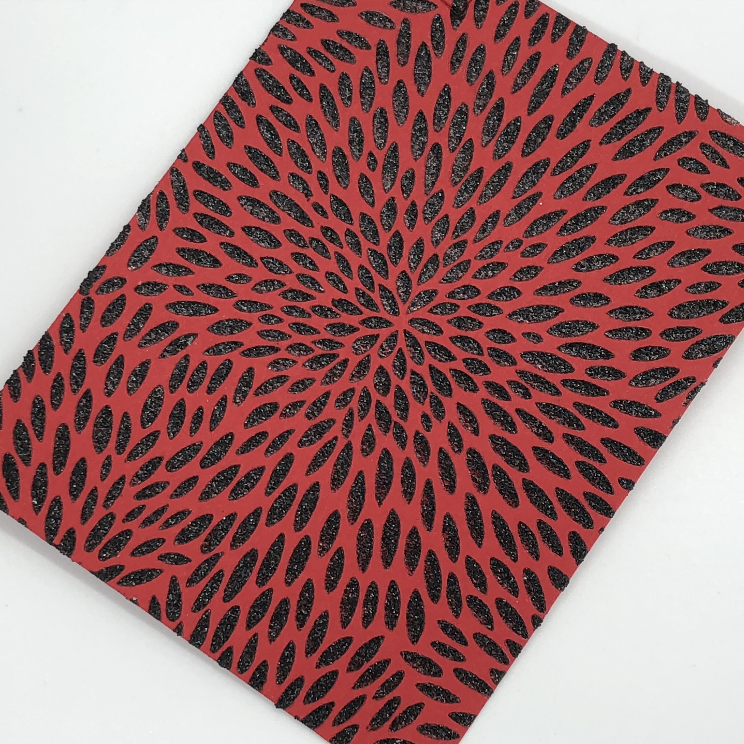 Isn’t it pretty? I’m not sure if this was created with a stencil and glitter paste or some other way. When I saw it, I immediately thought about a lady bug stamp set and how cute that would be with it. I was thinking about diecutting out a large flower from the red and black background. Unfortunately, every die I laid on there did not look right. 😔. Then I thought about drawing a flower and fussy cutting it out. But, I was too afraid I’d ruin the background.