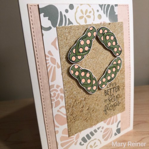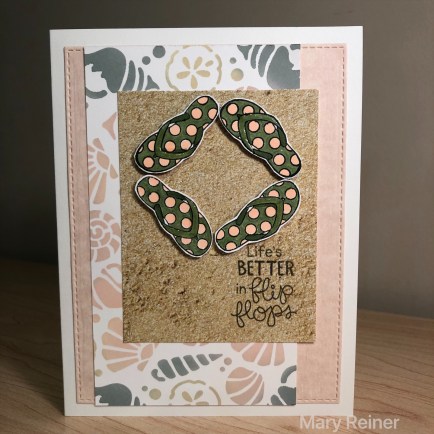 I started in the middle of my paper with Stormy Sky Distress Oxide ink. Then I blended in Seedless Preserves and finally, Black Soot. To give a little sparkle, I spritzed some shimmer spray.