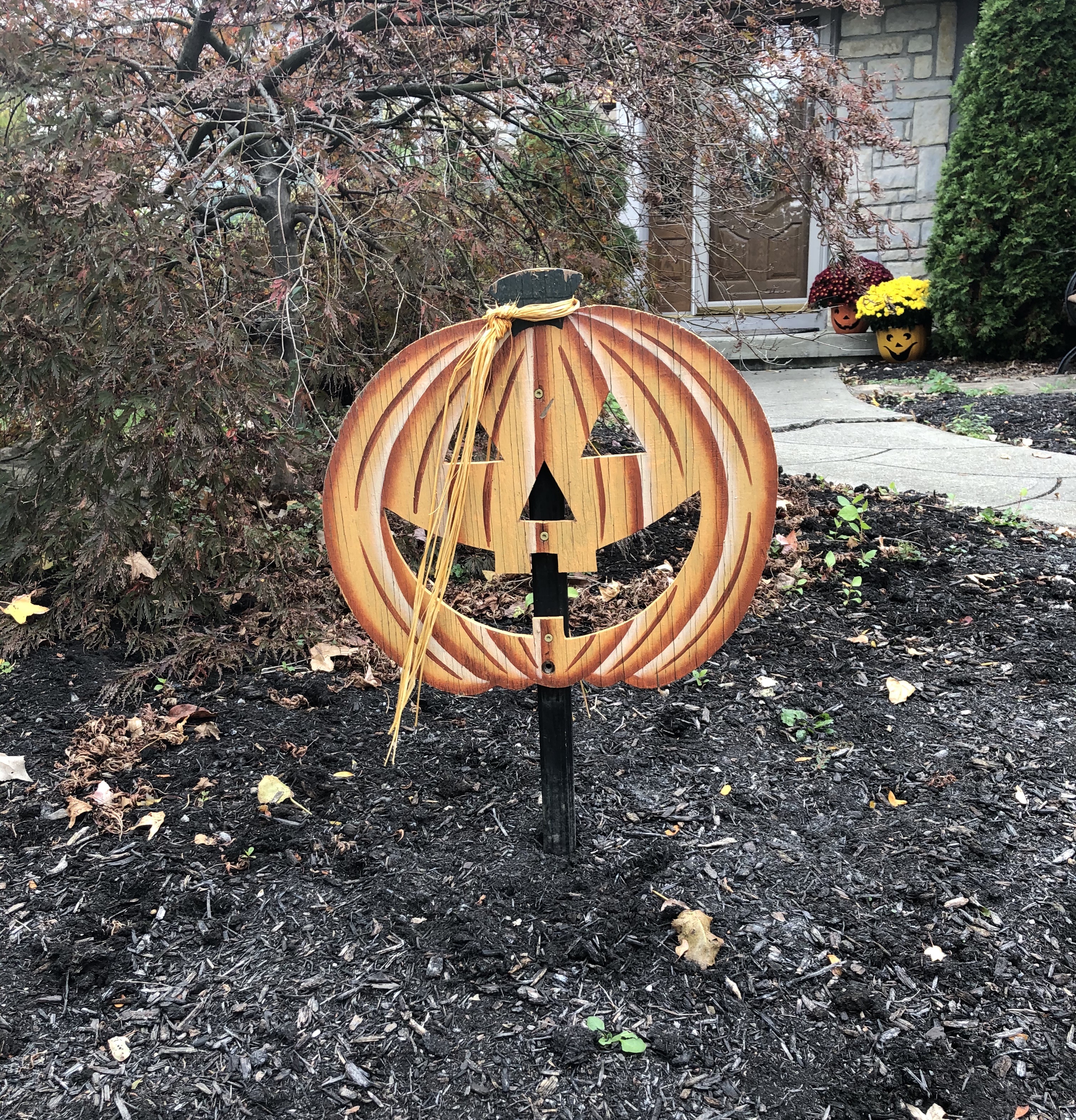 My mom bought him for me at a craft show years ago. He was one of my first Fall decorations. Mr. Pumpkin has followed me to 3 different homes. I think he loves me too.