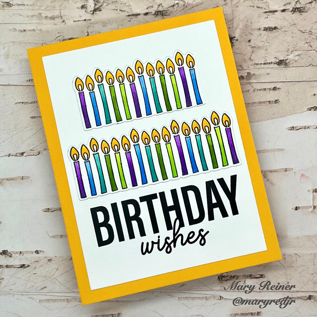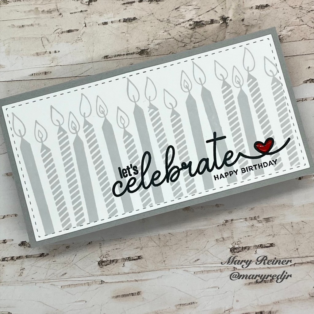 How pretty is this sentiment? Cathy Zielske designs the best sentiments. I wanted to create another graphic card and my goal was to make it look like a cake. This time I stamped the candles and then die cut them, just to add another layer to my card. I really like the colors I used on this card. What do you think?
