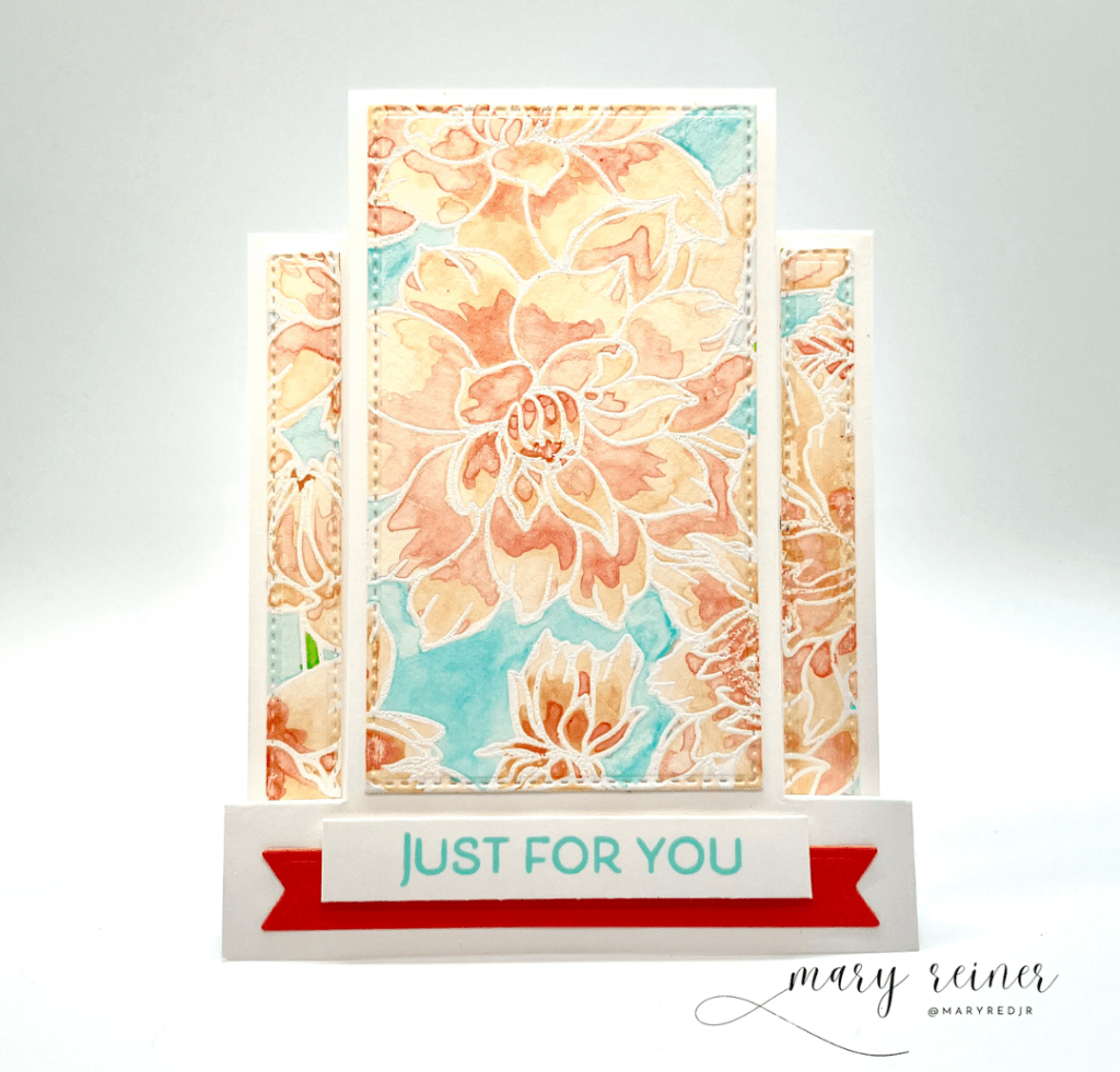 When I saw this sentiment set and this die, I knew I wanted to create a dramatic tri-fold card. I actually made two of these as I was trying to figure out the best way to create it. I will share with you my tips and tricks.
